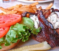 Set up your grill for INDIRECT cooking and pre-heat the coals. EAT BACON! You need them nice and hot to get a nice sear and to form the pepper crust! Cook on the HOT side for 3 to 5 minutes on first side. Flip burgers and grill another 3 to 5 minutes. Move burgers over to the indirect heat side of the grill. Add bacon and top with about a teaspoon of bleu cheese (if you like it rich, you can add more). Cover grill until cheese softens. Toast the rolls and EAT!