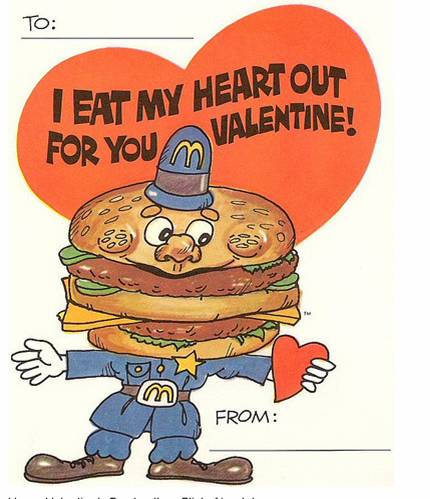 It's never too early to prepare for Valentine's Day.McDonald's gave away Valentine's Day cards over several years in the 1970s.This is from the earliest set used from 1973 or 1974.
