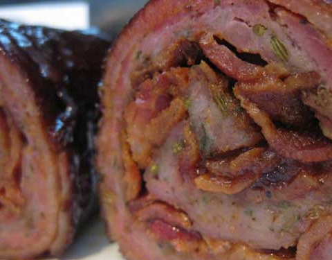 We've become a little bacon-jaded over the years, it's true. A person can only handle so much smoked bacon and flavored bacon and bacon flavoring and things wrapped in bacon until her capacity to absorb anymore bacon-knowledge is just about maxed out. But BBQ Addicts has pulled the rug from under our feet with something they like to call, quote, BACON EXPLOSION!!!