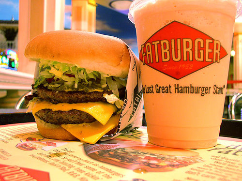 Today's meat filled destination is FatBurger. They are all over the U.S. but the one I visited was in sunny California, which was about February ago but what the hell.